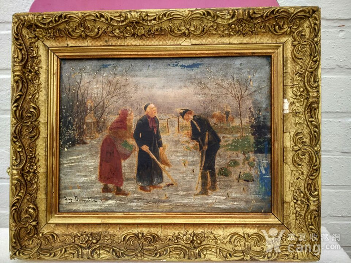 原配鎏金雕花画框,由于年代久远,布面油漆局部有轻微磨损,画框有细小的老旧冰裂纹,这属于正常现象。