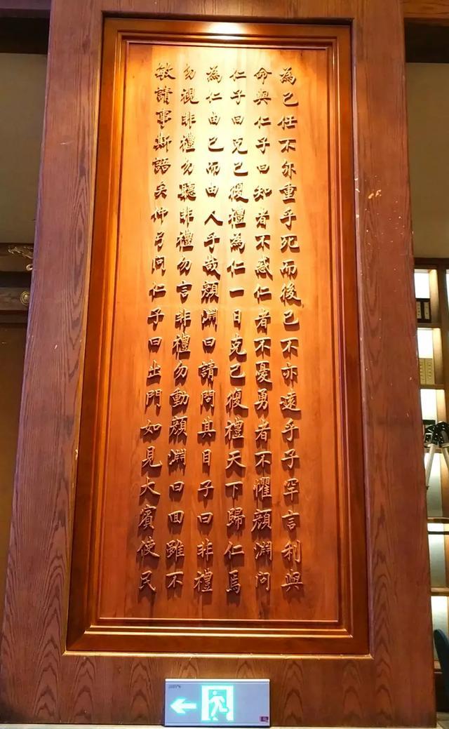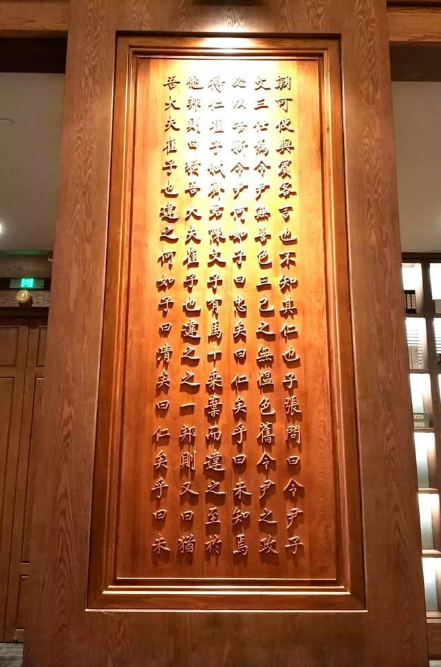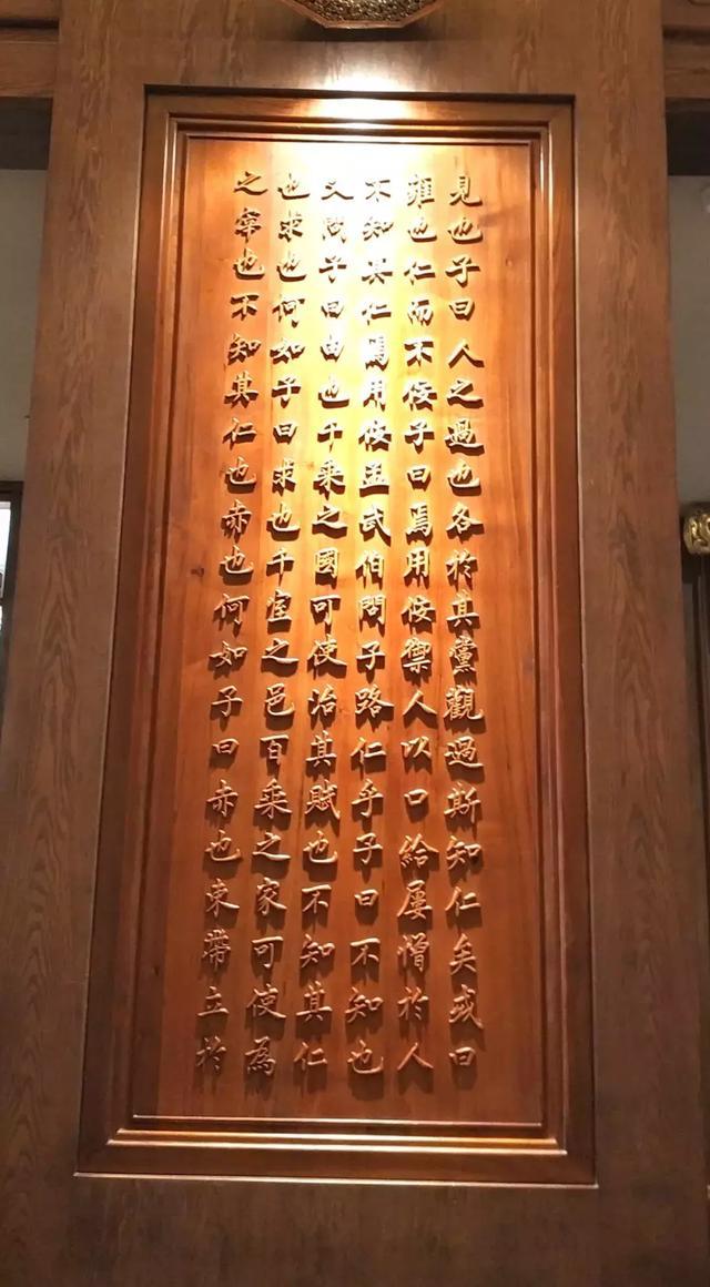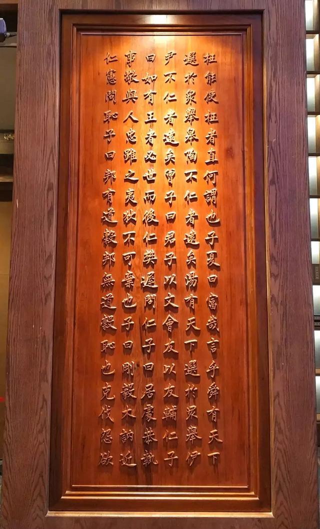 第17根大包柱上金丝楠木上的阳文镌刻的《论语》中的“仁”文句选录