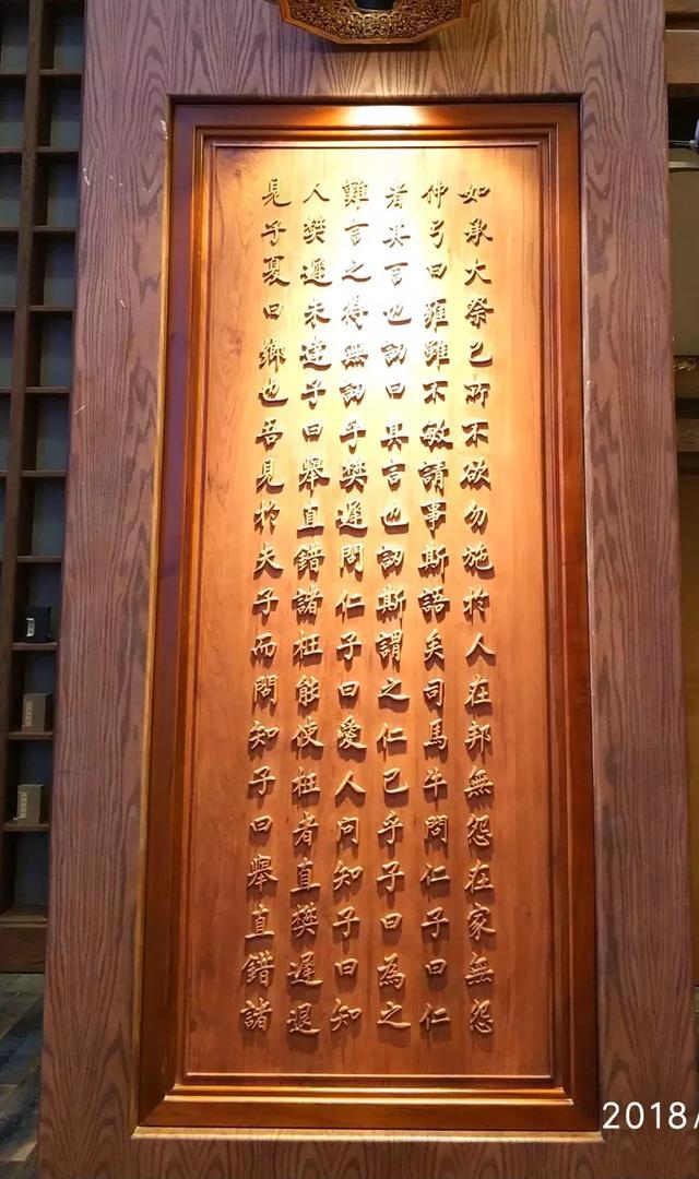 第18根大包柱上金丝楠木上的阳文镌刻的《论语》中的“仁”文句选录