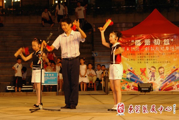 8月15日晚,“周末艺苑”推出儿童相声专场,由东莞(东城)儿童剧实验创作基地和东莞市儿童活动中心蚂蚁剧社联合主办的“蓓蕾初放”儿童相声小品晚会在音乐喷泉剧场成功上演,受到近千名小朋友和家长的热情欢迎和鼓励。