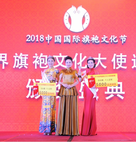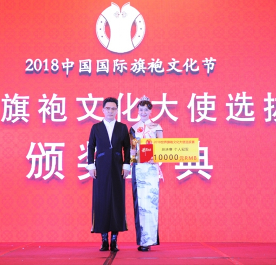 2018世界旗袍文化大使选拔赛总决赛个人冠军:王丽红(右)
