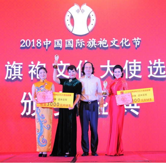 2018世界旗袍文化大使选拔赛总决赛团队季军:海南馨梅旗袍会、重庆山茶花开旗袍会、山西运城旗袍文化协会