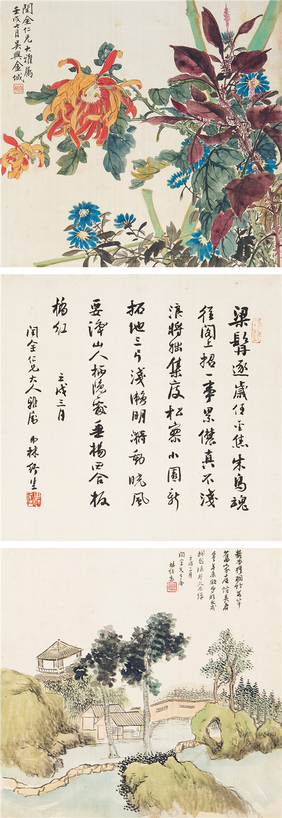 题识:1.闰全仁兄大雅属。壬戌(1922)七月吴兴金城。2.壬戌(1922)三月,闰全仁兄大人雅属,弟林纾涂。3.壬戌(1922)三月,闰全先生属,林纾写。