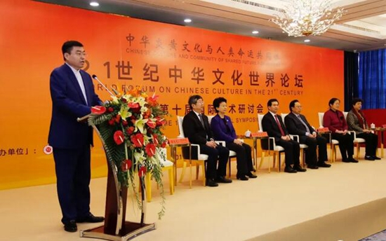 王正伟在讲话中充分肯定了中华炎黄文化研究会创立的“21世纪中华文化世界论坛”。他说,20年来,21世纪中华文化世界论坛论已先后举办了九届国际学术研讨会,均取得圆满成功。在贯彻十九大精神的开局之年, 以“中华炎黄文化与人类命运共同体”为主题,深入研讨,这对于弘扬中华优秀传统文化、推动构建人类命运共同体,具有十分重要的意义。