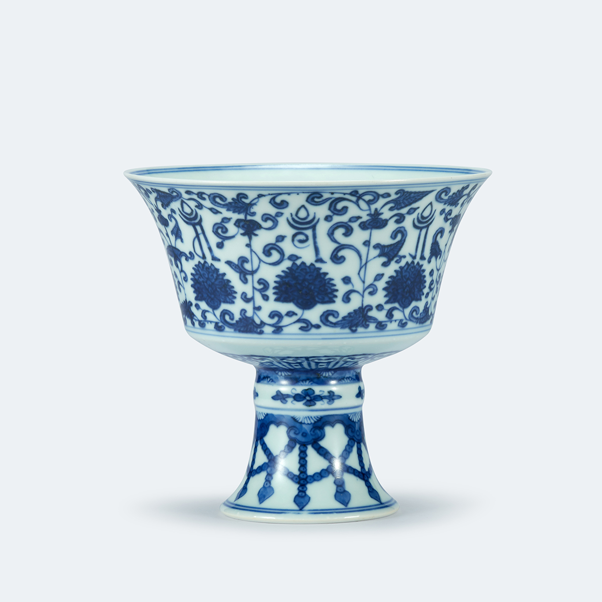LOT 8184 清 嘉庆 青花缠枝莲托梵文酥油灯