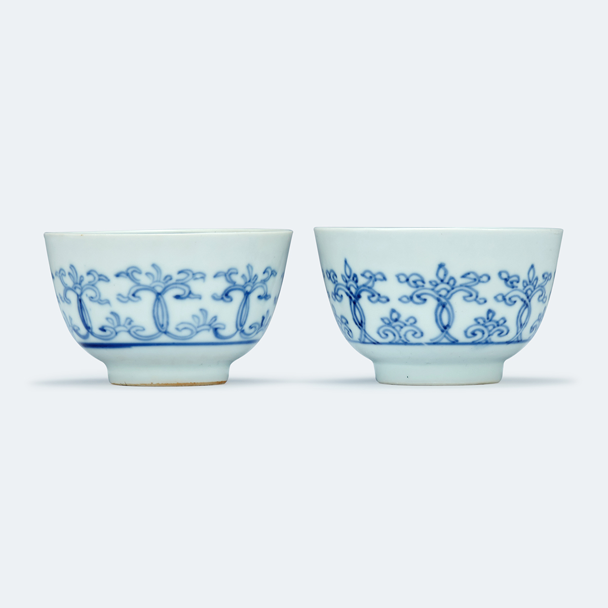 LOT 8018清 雍正 青花缠枝海石榴纹杯一对
