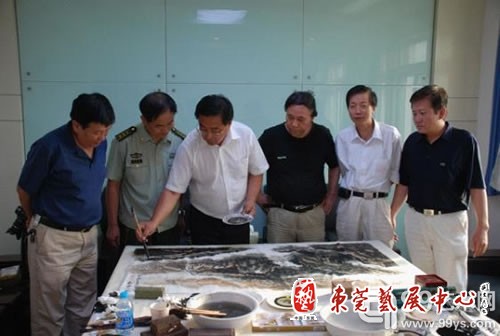 在建党90周年即将来临之际,为更好地增进军地关系,加深军民友谊,中国天津美术学院原院长,现天津美院教授、中国美术家协会会员、天津美术家协会副主席、中国油画学会常务理事、中国艺术教育促进会理事、天津市学位委员会委员、天津市文联委员、硕士研究生导师、享受国务院颁发的政府特殊津贴的张世范,中国美术家协会会员、天津画院副院长、天津美术家协会理事、副秘书长郭风祥等著名书画家,相约来到武警天津六支队,挥毫泼墨,绘写丹青,以此表达对子弟兵们的深情厚爱,与官兵们共庆建党90华诞。