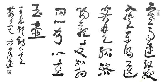 李徐灵先生接受访谈时表示,墨气淋漓、惊蛇入草、是趋向于草书创作的厚重如铸,在狂草与章草相融的不断磨合中,用笔取篆籀,字形以隶简,字与字以相对独立为主,偶作相连之态。字断时呈势连之妙,相连处无缠绕之弊。