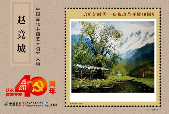 ▲用赵竟城老师作品制作的《庆祝改革开放40周年大型文献类珍藏邮册》中的纪念张(一)