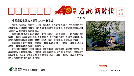 ▲用赵竟城老师作品制作的《庆祝改革开放40周年大型文献类珍藏邮册》中的明信片