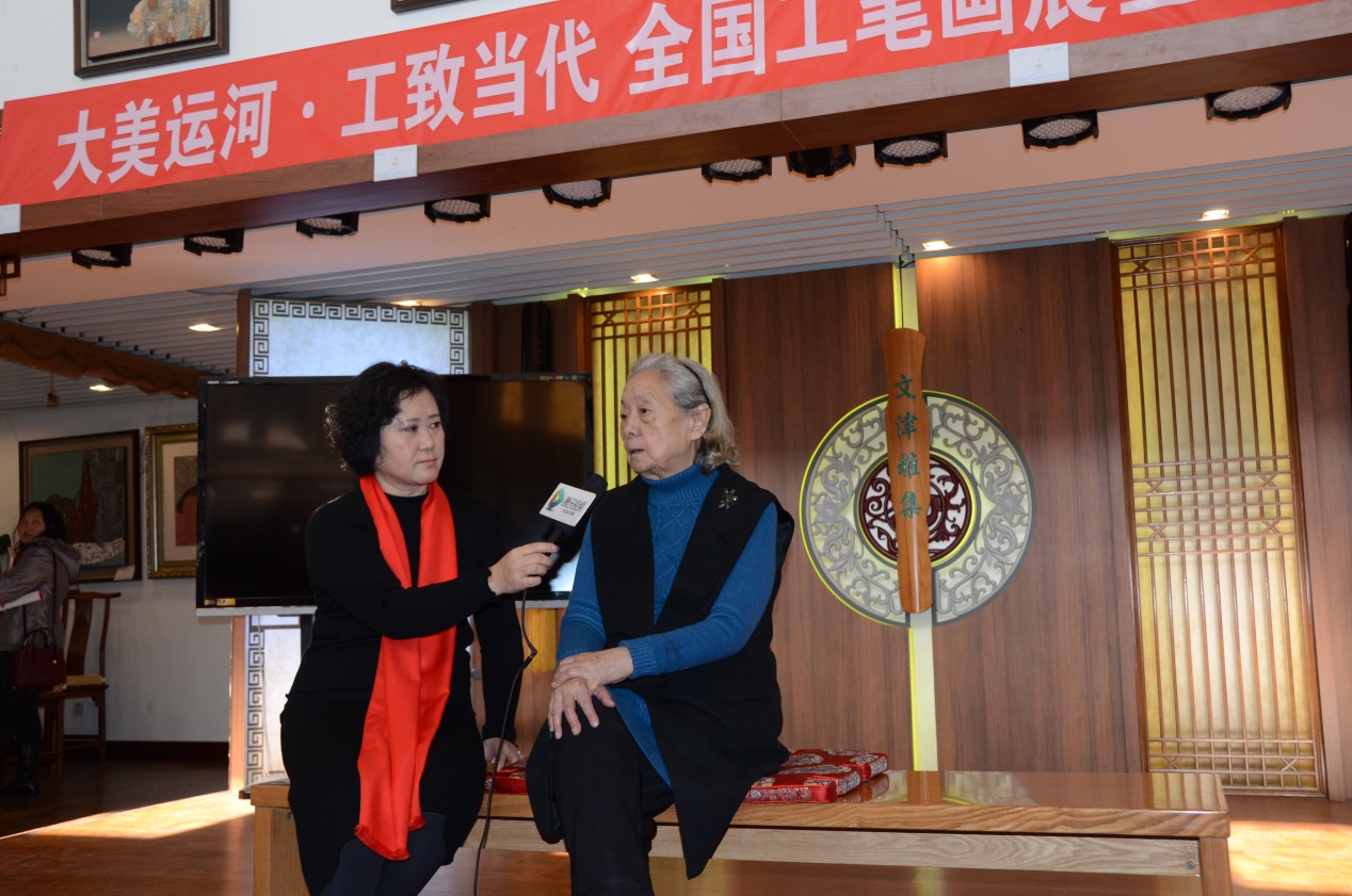 蒋采苹会长接受淮安市美术馆馆长栾剑的采访
