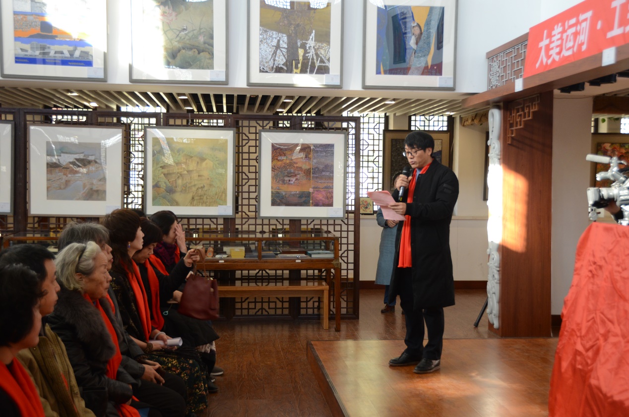 中国工笔画学会副秘书长、淮安市文学艺术院院长、淮安市美术馆馆长栾剑主持开幕仪式