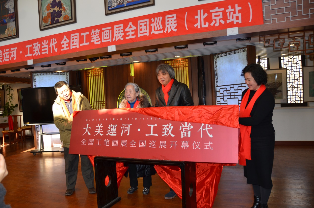 2019年1月17日10:00“大美运河•工致当代”——全国工笔画展全国巡展(北京站)在国家图书馆文津雅集隆重开幕,本次展览为江苏省艺术基金2018年度资助项目,此次展览由中国美术家协会中国重彩画研究会、淮安市文化广电新闻出版局、淮安市文学艺术界联合会主办,无锡美术馆、淮安市美术馆、淮安市美术家协会、淮安市工笔画协会、北京北图文化发展中心承办。