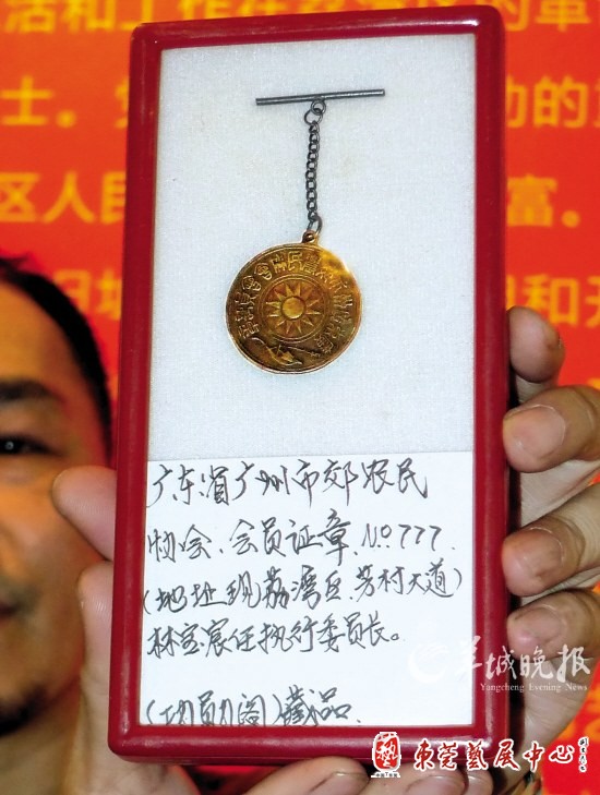 广州市郊农民协会会员证章是国内现存唯一保存完好的农民协会证章