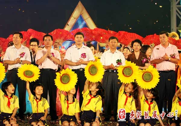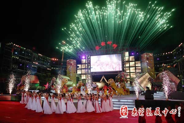 我区庆祝新中国成立60周年五大文化项目之一,“放歌神州东城区庆祝中华人民共和国成立60周年大型文艺晚会”9月25日晚8时在东城文化广场隆重举行。中共东莞市委常委、市委宣传部部长王道平、市人民政府副市长严小康、市政协副主席周楚良、市文广新局副局长黎寿康、市文联副主席宋媛、中共东城区委书记、区人大联络委主任黄少文、区委副书记、区办事处主任卢润江、区委副书记袁国超、区两套班子成员、区人大联络委副主任和近万名东城市民一起出席了晚会。