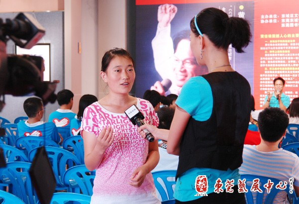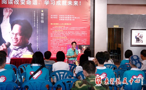 他们还特别邀请了轮椅作家、励志歌手黄任锋为读者举行了一个讲座。黄任锋于1999年坐着轮椅到东莞开始他的打工生涯,他以拼搏和奉献而荣任“2004CCTV中国最具经济活力城市”东莞活力形象大使,是无数新莞人打工成才的楷模。黄任锋曾从柳州摇着轮椅到北京天安门广场,向共和国的生日献礼,此次到东城参加国庆书展,恰好是他轮椅远征21周年的纪念日。他携他的励志传记《人生你好》与读者朋友见面,为大家演讲知识改变命运的感人故事,并现场签售他的作品,与大家分享他的坎坷与传奇的人生。