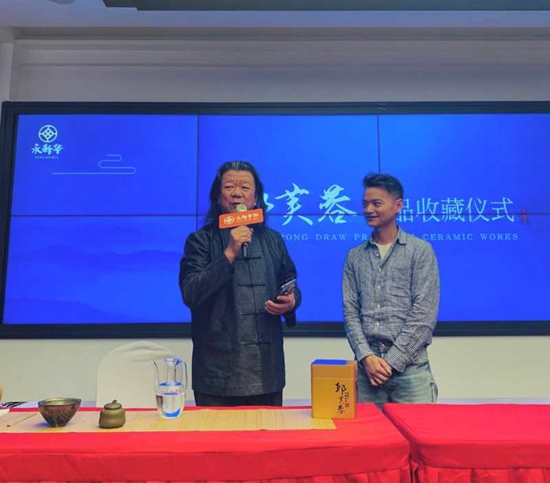 吴震启老师对邱芙蓉的作品也赞不绝口:“芙蓉盏是在古代建盏工艺上增加了现代创新技术的产品,具有极高的艺术造诣和收藏价值。”吴震启老师本人也在会上收藏了邱芙蓉大师的芙蓉盏作品。