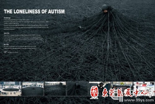 空旷的场地上,一个直径达15米的黑色漩涡里,模特身着黑色紧身衣服,被成千上万的黑色毛线不断缠绕,最后受困于巨大的线海中,把抽象的“孤独”活生生地暴露在每个人眼前,极具视觉震撼力。这一行为表演被命名为“扬爱艺术计划之绝望漩涡”。创意象征孤独症家长被孤立的内心世界,以此来获得社会对孤独症孩子家长的关注和支持。