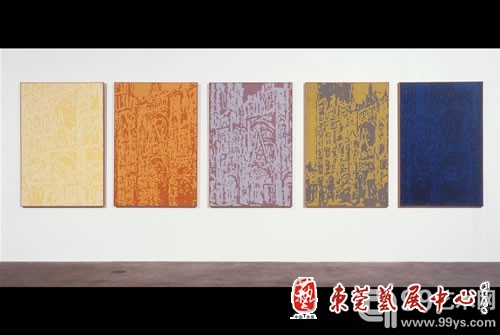 1963年,他放弃了通俗题材,他的画基本是采用毕加索作品的特殊片断和蒙德里安的典型风格,他对他们的复制品进行自由的改造,如同连环画一样是机械复制的。后来,他又抓住了一个非线条的画家――莫奈,他将莫奈创作的《卢昂大教堂》不可捉摸的印象派后期笔触转变为系统的色点。 此次展览就展示了奇特斯坦的十幅“卢昂大教堂”。