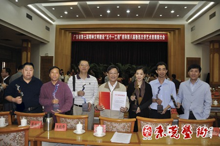 此外,我市还获得了本届鲁迅文学艺术奖的六个奖项,分别是由何建明、朱子峡合著,被誉为“东莞改革开放三十年全景扫描”的报告文学《东方光芒》,周汉标的《篆刻一组》,颜奕端的书法作品《云移风送》,王海明的摄影作品《浮华与空洞》,东莞群众艺术馆编著的《东莞木鱼书1-3集》和大型组歌《香飘四季》。广东省鲁迅文学艺术奖是我省文学艺术类唯一的综合性政府奖项,东莞获奖总数仅次于广州、深圳,在全省排名第三。