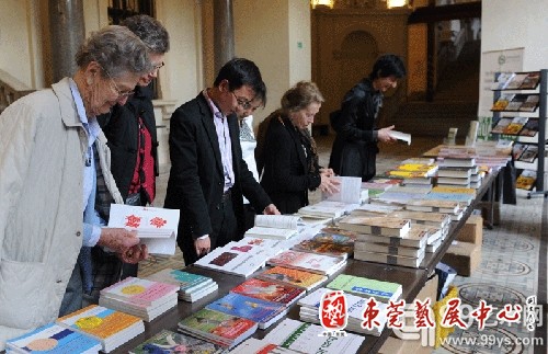 (2)4月19日,观众在奥地利维也纳大学举办的“中国文字展”上翻阅中国图书。