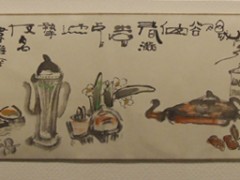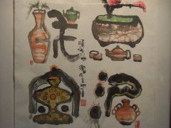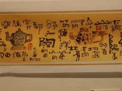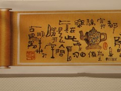 吴顺华的作品通过刻、绘、描、彩等艺术手法和技艺,再现了中华文化的博大精深和美术情韵,形成了霸气、大气、神气、文气、人气的吴氏风格。近日,他携其跨度20年约300件展品到东莞艺展中心展览。这次展览也将展出吴顺华的得意作品,即“镇殿之壶”《盛世和谐》一套三件,外形相同而大小不一。此壶曾在2007年“中国收藏家喜爱的紫砂艺术大师”作品展中获金奖。吴顺华称它为此次展览的“亮点”,如今最大的那件要30万,最小的要3万。吴顺华的作品已经被中国外交部选定为对外文化交流礼品。
