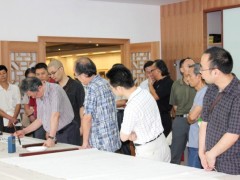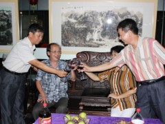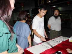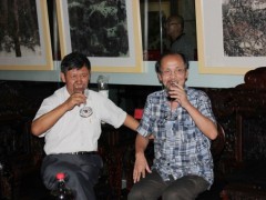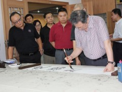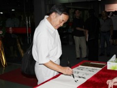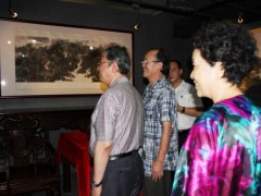 下午2点,天边.问梦--肖映川、陈炳佳中国画展在艺展中心A馆二楼中国书画名家馆举办开幕酒会。中国国家画院国画院副院长、中国美协中国画艺委员会副主任、河山画会会长、当代著名画家李宝林先生亲临现场,东莞市人大副主任王道平、东莞市文联主席刘锦明、南城区党委书记钱超、副书记苏东、党委委员潘立新等领导也前来祝贺!76岁高龄的李宝林先生现场挥毫,祝福东莞艺展中心事业兴旺!