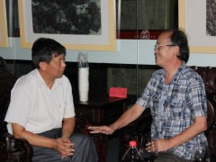 参展的两位艺术家了均为中国美术家协会会员,长期以来致力中国画的探索和实践,取得了骄人的学术成就。肖映川,1946年生,原广东美协会副主席,汕头画院院长。他在版画创作上获得丰收后,又转入中国画的研究,特别在其师李宝林先生的言传身教下,承李家山水沉雄、大气之风,又融入自己在版画上取得的艺术经验,创造了既有传统水墨精神又有现代审美特质的山水样式。陈炳佳,1964年生,广州军区文艺创作室专职画家,广州军区美术书法研究院副院长。过去多年陈炳佳一直在军区基层部队担任领导,坚持用业余时间探索中国画的继承和创新问题。艺术家把对中国传统文化精深的研究带入中国画现代化、国际化问题的探索,开创了一个如梦如幻、最古最新的中国画境界。两位艺术家都有着军旅生活经历,作品中充满了军人的豪迈和阳刚之美,他们以不同的艺术语言和艺术实践方式,负起振兴民族文化的使命,取得了各自精彩的艺术成果。