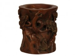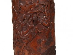 黄杨木雕三英战吕布笔筒