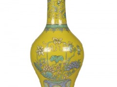 清雍正 黄地粉彩蝴蝶花橄榄瓶(高仿精品)