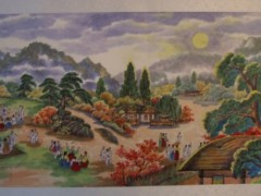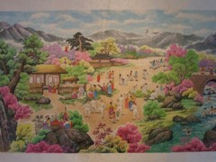 本次展览共展出朝鲜当代美术作品达100幅,以自然风光为题材,有金日昌、安昌南、崔京国、金仲赫、金静斋等70多位朝鲜著名画家的作品,还有朝鲜人民艺术家、功勋艺术家崔春浩的作品《静静的海湾》和涵观摄作品《古城春早》。