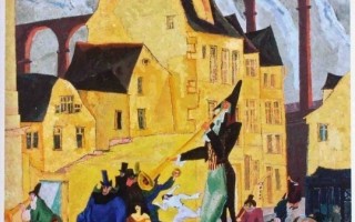 以上简单的从艺生平,旨在说明菲宁格的艺术语境和语言特征,这就是欧洲的后印象主义、表现主义、立方主义,这一切构成了菲宁格绘画的早期现代主义前提,也给其修辞语言做出了时代、潮流和风格的界定。关于修辞语言,既然我们关注整体的通盘设置而不仅仅是孤立的遣词造句等局部问题,那么我们就可以在大体上说,首先,菲宁格早期在德国的插图生涯,给他一生的艺术创作赋予了或隐或显的漫画式夸张变形的特点,并透露出非写实的想象成分。其次,他在巴黎对后印象主义和立方派的钟情,使他的绘画又同时具有了立方主义的特征。第三,他在包豪斯的经历,使他与表现主义接下不解之缘,从而最终形成了自己那以表现主义和立方主义为主要倾向的抽象绘画。