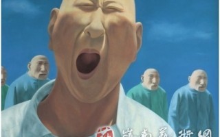 这幅《1991-92系列之二》就是方力钧那一时期的代表作。在这幅作品中,方力钧塑造了几个身份模糊的光头形象,其中最靠前的那个光头占据了画面的中心,他以扭曲变形的打呵欠神态,隐约传达出一种撕心裂肺的呐喊,就好像马上要挣脱出画面的束缚,奔向那广阔的自由世界。