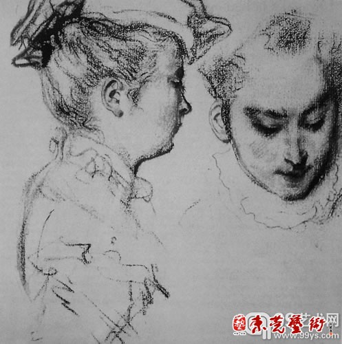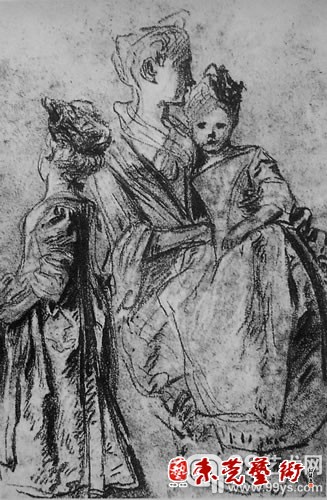 华托自己也觉得,画那些素描比画油画还要过瘾。“我经常看到他因为自己无法像用炭笔那样,在油画中传达那些真相和光彩而情绪失控。”华托的赞助人格森特(Gersaint )曾经这样描述他。