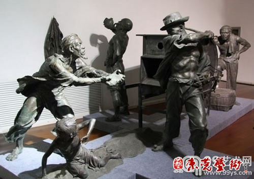 北京炎黄美术馆推出“新中国美术经典——再现收租院”雕塑展,展品是四川美术学院1977年完成、近些年曾多次参加国际国内重要艺术展览的玻璃钢镀铜组雕《收租院》,共有103件人物像和道具,是首次进京展出。本次展览配合雕塑作品同时展出收租院历史照片、收租院记录片等珍贵的文献资料。据展览方介绍,这次展览已经筹备了两年,由于此前并没有展览信息外露,因而,甫一开展即刻引起巨大反响。由于当时政治文明和社会道德、艺术道德、艺术思想等方面失落殆尽,作为事件和历史存在的收租院以及整个文革艺术存在大量杜撰和臆造,人们在期待文革当事人对文革包括对文革艺术进行理性反省的时候,却意外地推出这样的展览,自然会引起广泛的讨论。然而,展览方对此次展览的主题确定或者阐释,显得模棱两可,价值指向和展览企图并不清晰,使这次展览的企图和目的更加扑朔迷离。炎黄艺术馆副馆长周旭君表示: