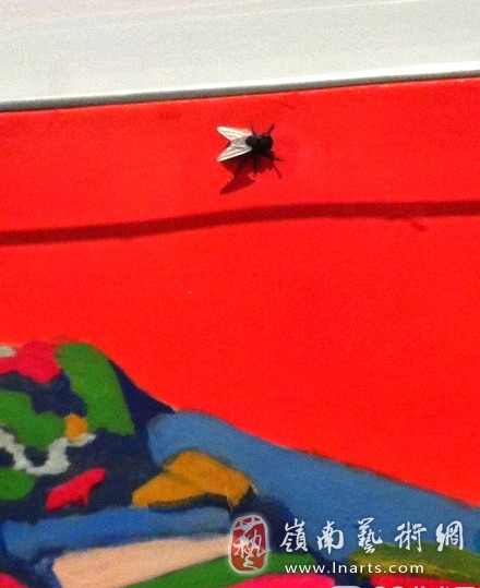 马歇尔·雷斯的《日本制造·大宫女》,画面是一位侧首回望的宫女,其造型分明选取自古典主义画家安格尔的《大宫女》,但他将宫女的肤色变成了翠绿,背景变成了红色,让人联想起其同时代美国波普艺术家安迪·沃霍尔的《玛丽莲·梦露》系列。它原来是用各种材料拼贴起来的。他剪取了宫女的底片效果的放大照片,染成了绿色,贴在红色的底板上,绘上头巾,而头巾末端的流苏是用真的物品粘上去的。同样鬓上的头饰也是用实物粘贴的。最有趣是画幅顶端停着的那只苍蝇,竟是真的。