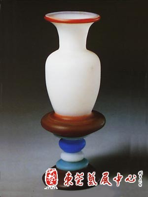 彩色玻璃带座瓶(清乾隆)高19.2厘米,口径6.2厘米,故宫博物院藏。
