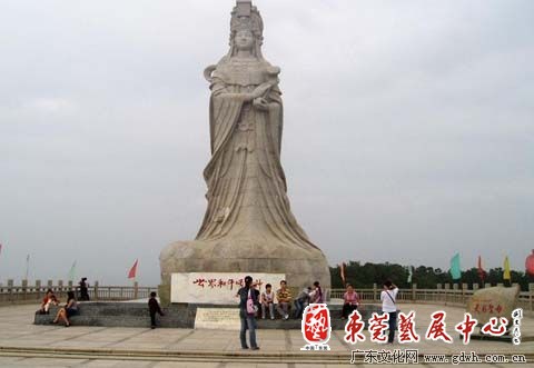 广东与福建之间交通方便,早在宋代广东已有妈祖庙。潮州天妃庙始于宋代,汕头放鸡山天妃宫建于明万历四年(1576年),由总兵晏继芳捐建。今天广东沿海不少地方还保存有“天妃庙”、“天后宫”一类宗教建筑,著名的有南澳妈祖、汕头妈屿、揭西天后宫、海丰天后宫、深圳赤湾天后宫、阳江祖创宫、电白天后宫、丫寮天后宫、海安妈祖宫、硵洲天后宫。粤北和粤东也有不少,如连县、蕉岭各地都有。有些地方还保留下来了与天妃、天后有关的地名,汕头有 “妈屿”,湛江有“天后街”(现为东方街),广州市更有相关的六条街巷:一德路有天后巷,西华路有天后里,带河路有天后直河和天后横,光复北路有天后庙前,芳村有天后庙前街等。