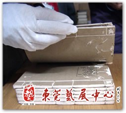 派拉伦加固后的纸质文物,书面滴水呈珠状,书则不会受到侵害