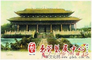 19世纪的明信片,展现殿宇式建筑正面,注释是以英文书写的广州帝王庙。