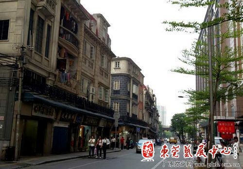 在十地街区内紧邻中国行号的是各国商馆,这里是供洋人经商、居住的地方。商馆在外观建筑、室内装饰及生活方式上都带有异域风情,成为一个世界商务机构的博览会。木板平顶型的中国行号与拱形廊式的西洋楼交相辉映,构成了一幅中西合璧的人文景观。