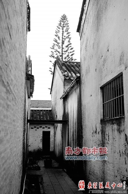 逼仄幽深的小巷中,几位村民坐在屋檐下聊天,享受悠闲午后,见到记者一行人,纷纷投来好奇的目光。200多年前,他们的祖先也一定曾这样坐在屋檐下,聊着家常。一辆摩托车发出隆隆的轰鸣穿过绿墙古巷,现代文明与古岭南田园生活在这一刻交汇。
