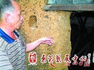 “这墙连枪都打不破!”(见左图)桂叔说,建围龙屋的材料是三合土:必须是没有杂质的干净红土,再按一定的比例掺以细河沙、水田底层的淤泥和年代久远的老墙泥,充分搅拌均匀后,加水用锄头反复翻整而成。 围墙很坚固,它曾被洪水浸泡,但仍能保存至今。