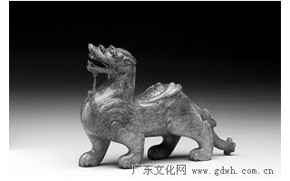 辟邪,神兽名,在汉唐及其后古籍常有关于其传说古事之载,其为想象中的神话动物,顾名思义,是人们希望借助它的法力来避除邪恶。关于辟邪的形状,说法不一,大多认为它是一种似狮、独角或双角,身有翅的兽,这与今所见六朝墓前之石辟邪之形是一致的。其作用,顾名思义主要是辟邪祛凶。流行于汉代的辟邪,多为带翼的四足兽,其造形可能传自西亚。常以巨石雕刻,立于陵墓前,也用美玉琢成,作为极高贵的陈设器。