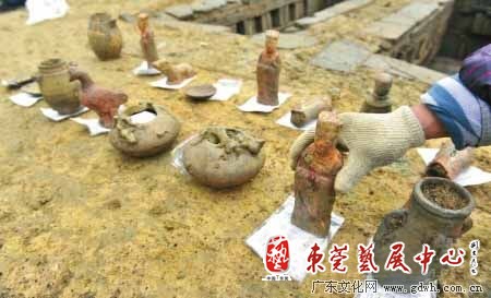 随着该项目考古工作不断深入,从墓室中还出土了一批价值较高的文物,包括汉代的镇墓兽首俑、庖厨俑、侍俑、舞蹈俑、持插持箕俑、钱币等,宋代墓葬出土的武士俑、匍匐俑、提梁罐等。