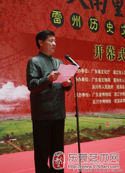 12月27日下午,“天南重地--雷州历史文化展”在广东省博物馆隆重开幕。省委常委、省委宣传部部长林雄、省政府副省长雷于蓝、省文化厅厅长方健宏、湛江市委书记刘小华等领导出席开幕式并为展览剪彩。省有关部门负责人、广东文博界专家学者、湛江和雷州市代表与各界观众共400余人参加了开幕式。