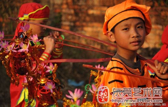 据了解,傩舞在东岭村叫做“考兵”,或“练兵”和“驱魔”,由“车”、“麦”、“李”、“刘”和“洪”五位将军(村民也称为“凶煞将军”)和土地公、土地婆组成,传说中这五位将军是北宋抗辽名将康皇麾下的战将。考据东岭村“考兵”傩舞历史,该村村址坐落在湖光镇人民政府所在地铺仔圩边,全村3000多人,村民均姓林。东岭“考兵”傩舞是由其祖上在宋朝由北方迁居福建莆田,明朝时入湛江,明末定居于此地。