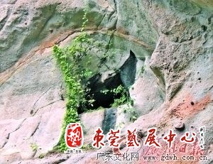 神秘岩洞就在石祠堂旁边的峭壁半山腰,距离地面大约15米,洞呈不规则的四方形,直径在80厘米左右,里面还有几株自内向外生长的藤类植物,洞下方还有黑色的水流痕迹。洞四壁比较光滑。据罗先生分析,西樵山自宋代以来,就是广东有名的石材采集场与贸易中心。山上采集的石材依靠工具与人力吊上来、运输出去,能够把笨重的石块从山洞里吊上来,当然也能够把棺木吊到岩洞里。