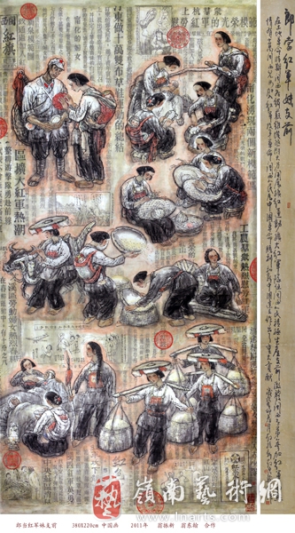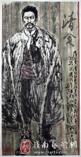 由此,我们有必要重新审视写意人物画独特的认识方法和表现方法。其一,“意”是写意人物画的内在特质,也是写意人物画的核心。写意人物画重在传神写意,有强烈的抒情性,它不拘泥于诸如比例、透视、结构、解剖、光影、色彩、质地、肌理等的如实描摹,而是特别重视主客观统一的意象表现,即以形写神,情景交融,调动包括夸张、变形、取舍、隐喻等各种艺术手段去强化对象的内在本质。写意人物画也有强烈的创造性。就画面经营来说,是平面空间意识,不受焦点透视和客观景物的限制,为了表现画家的思想意图、审美情趣,甚至可以根据画面需要,突破时间空间的制约而进入更为自由的境界,如把不同时间的人物、景物有机地组织在一幅画面中,或在一幅画中展现情节的持续发展,不受科学透视的约束,自由而能动地表现对象的形体和空间,而诗、书、画、印之熔为一炉,又使画面产生特殊的效果,给人们留下咀嚼、体味的余地。其二,“写”是写意人物画的外在特质。写意人物画有独特的笔情墨趣,追求的是情趣和神韵,有强烈的书写性,强调把书法精神和笔法运用到画法中去。写意人物画主要依靠笔墨变化来表现人物形象,笔墨出神入化,以一当十,除了表现一定的物象结构,还具有不依存表现对象的相对独立的审美价值,如韵律美、节奏美等,是构成写意人物画韵味情趣的主要因素。在笔墨形式美中,线是构成笔情墨趣最基本的决定性的因素。线是经过高度提炼了的美的精华,在线中凝聚了大自然的各种美和力的因素,凝聚了画家的情感和气质。写意画的笔墨之所以富有审美价值和感情因素,很大程度上在于它溶入了中国书法艺术之美,吸取了书法艺术的点线结构表现感情的技巧,在描绘客观对象风神骨气的同时传达出画家的主观精神和观念意味。无怪乎有人说写意画是状物的书法,是书法的状物。