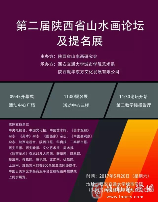 为了推动中国山水画创作和学术研究的繁荣与发展,弘扬中国山水画艺术的优良传统,展示我国特别是陕西省山水画创作与研究的新成就,第二届陕西省山水画论坛及提名展将于2017年5月20日在西安举行。陕西省山水画论坛及提名展是一项在美术界较有影响的持续性的学术活动。据悉,这次论坛的规格和规模都较两年前的首届陕西省山水画论坛上了一台阶。